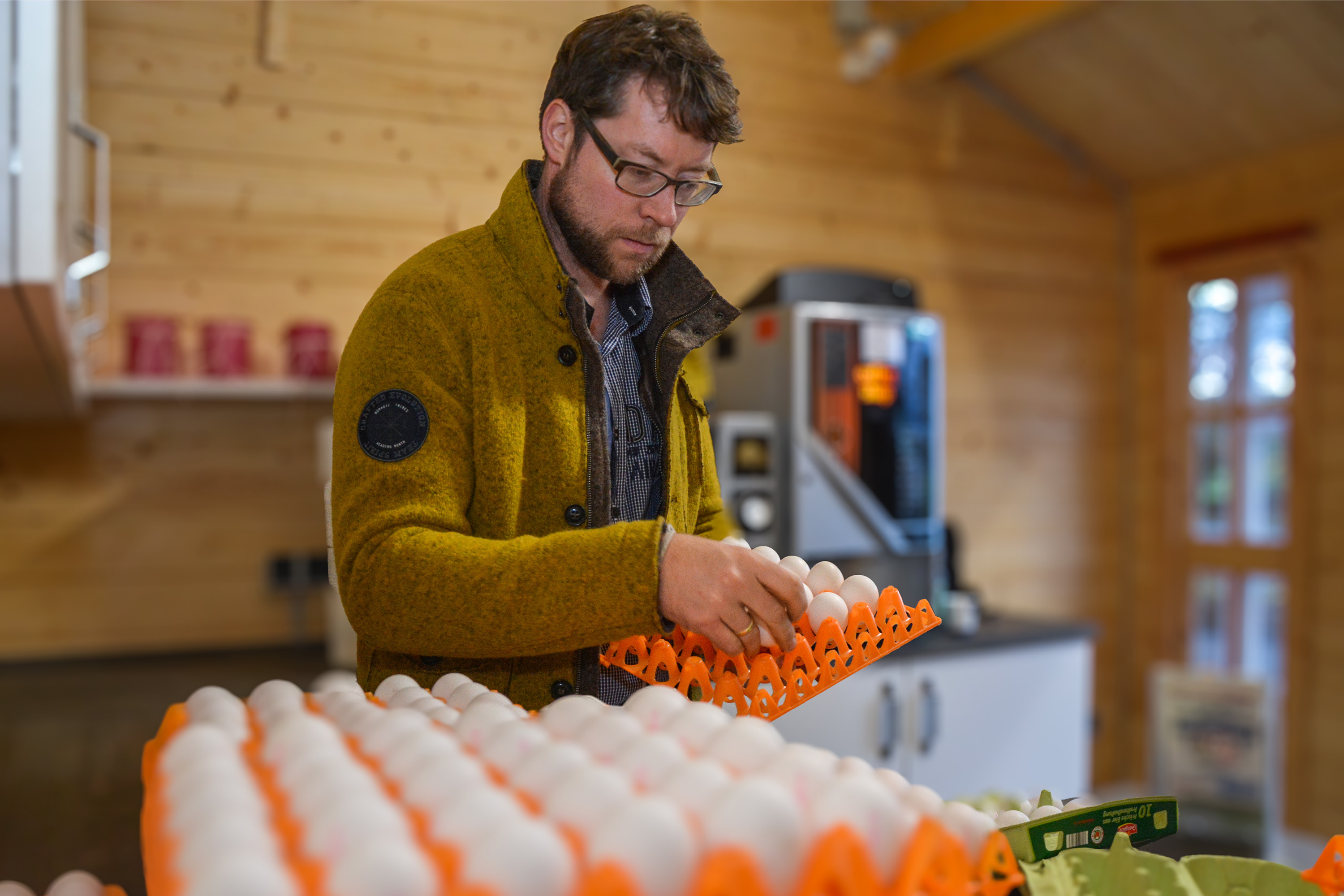 Geführt wird der Betrieb bereits in fünfter Generation von Jens Engelken. Der diplomierte Agraringenieur (FH) hat in den vergangenen Jahren den Hof zu einem zukunftsorientierten Unternehmen umgebaut und sich auf die Bereiche Hühner- und Rinderhaltung, Ackerbau und erneuerbare Energien spezialisiert. Doch ein besonderes Anliegen ist dem 43-jährigen Vater von drei Kindern der direkte Draht zum Verbraucher. Deshalb richtete er unter anderem 2015 die Wierescher Eierhütte ein, in der es neben den eigenen Eiern aus der Freilandhaltung auch etliche regionale Produkte zu kaufen gibt und ganz nebenbei Verbraucher über die moderne Landwirtschaft aufgeklärt werden.